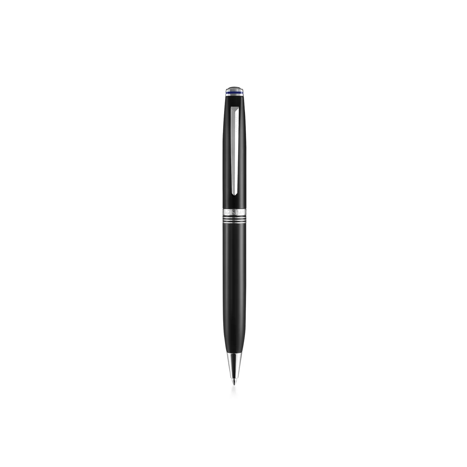 The Contemporary Dark Metal Ballpoint Pen is a befitting addition to the armoury of the modern collector. Sculpted from light metal, featuring a black lacquer coating and distinguished chrome trims, it is an elegant offering to writers. A sharp clip allows you to place it on your person.
